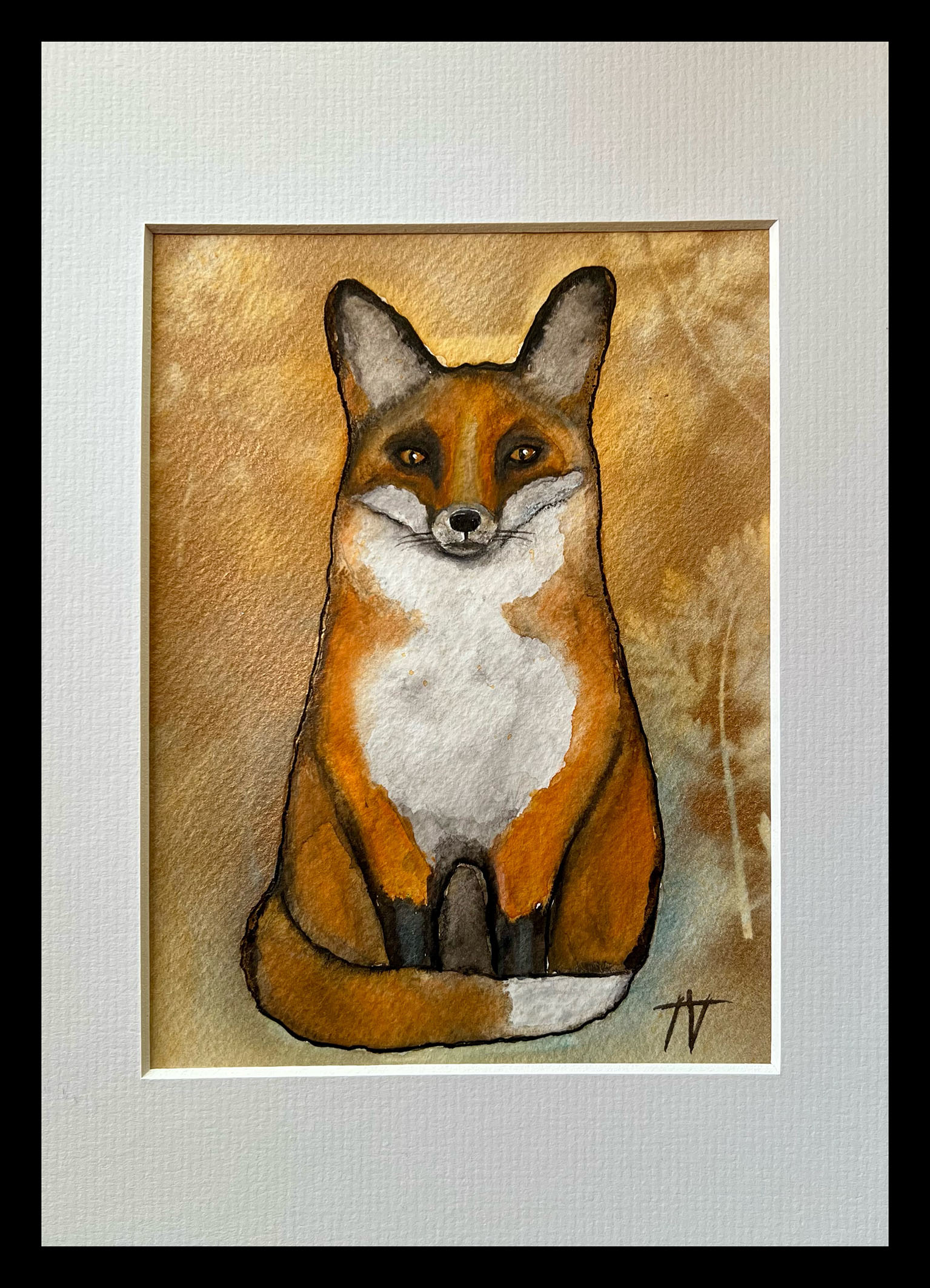 Akvarelli / valkoinen happovapaa paspatuuri. Aukon koko 14x19cm. Mustassa puukehyksessä oikea lasi, Koko 20x30cm.